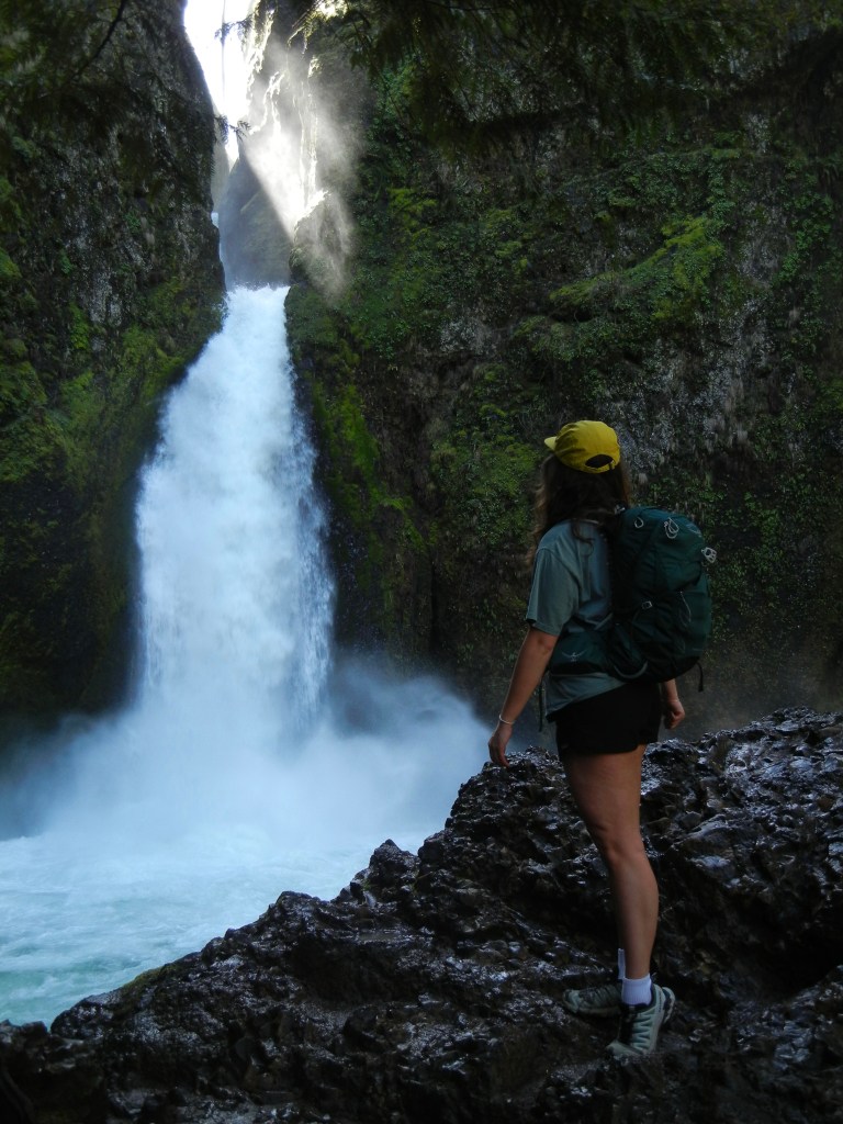 Many Oregon waterfall hikes can be muddy, steep, or slippery, especially in spring. Wear waterproof hiking shoes, check trail conditions on Oregon State Parks, and bring The Ten Essentials just in case.