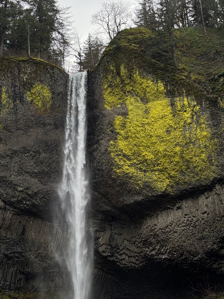 Latourell plunges 224 feet over a cliff face layered with columnar basalt—super photogenic!